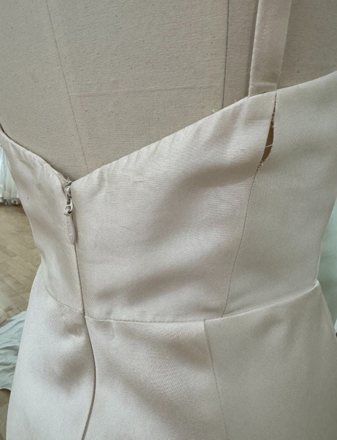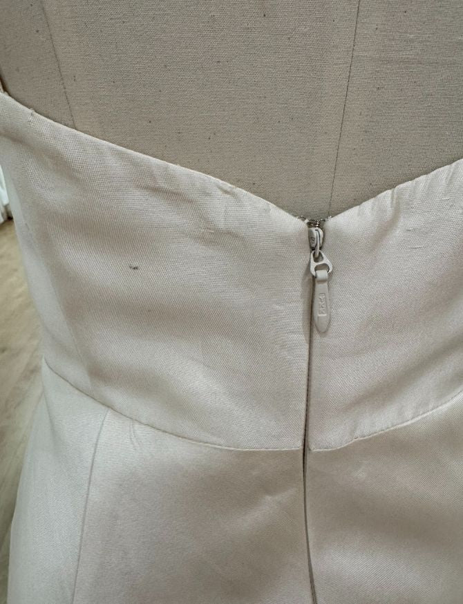 Gown has some signs of wear. Would greatly benefit from dry cleaning. Right back seam has come undone but would be an easy fix in tailoring as it is right on the seam line.