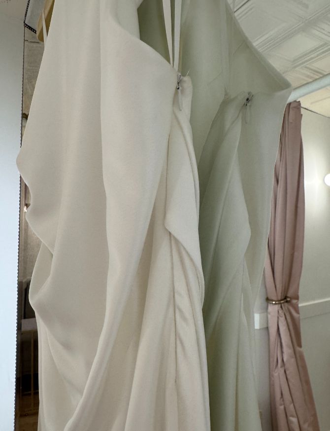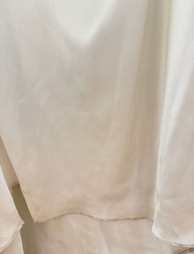 Gown has a variety of marks throughout that would be improved in dry cleaning.