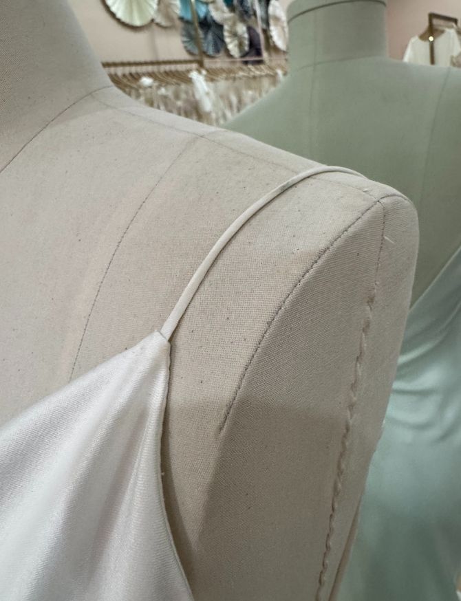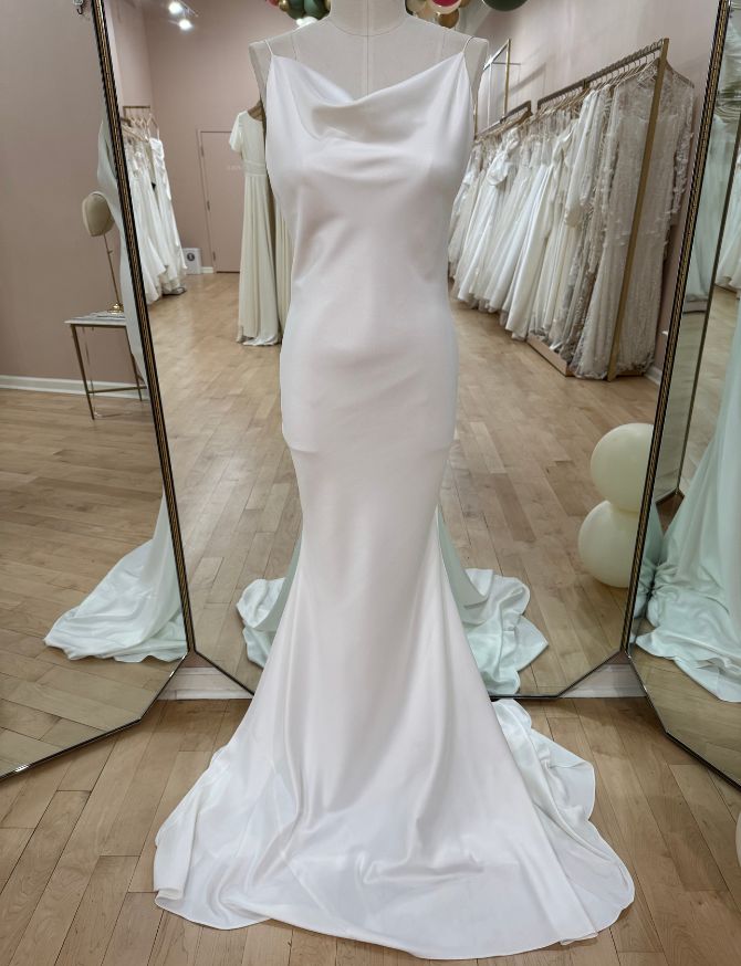 Gown is in very good condition. Slight markings on hip and straps would come out in dry cleaning.