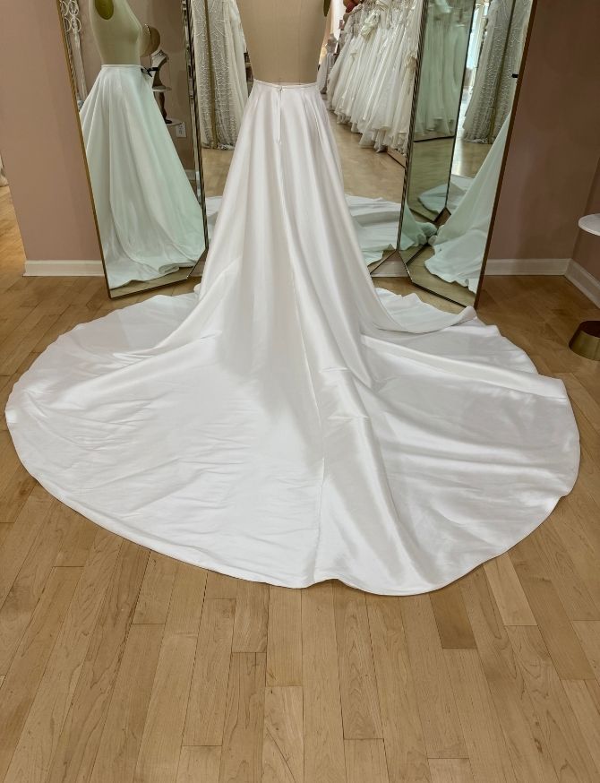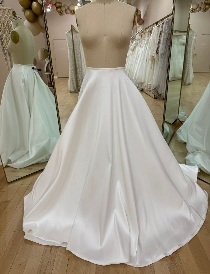 Mikado circle skirt in a soft ballgown shape with no crinoline. Perfect to put over a fitted skirt to create a second look.